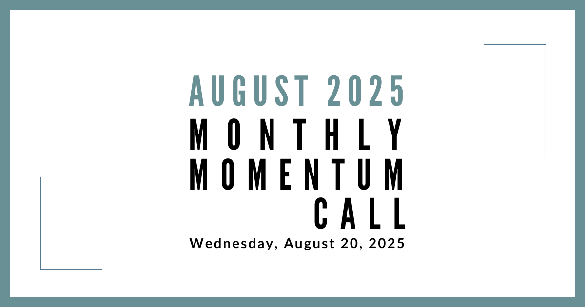 Join us for our next Monthly Momentum Call on August 20, 2025 at 11am PDT