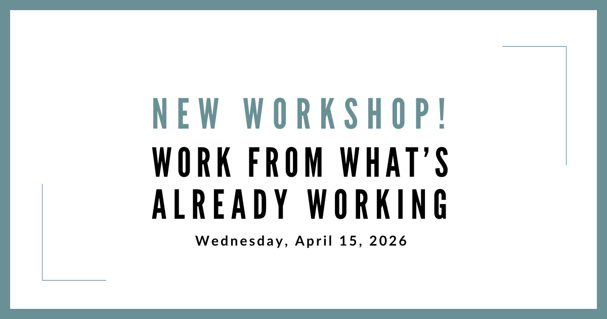 Join us for our New Workshop, Work from What’s Already Working, on April 15, 2026 at 11am PDT